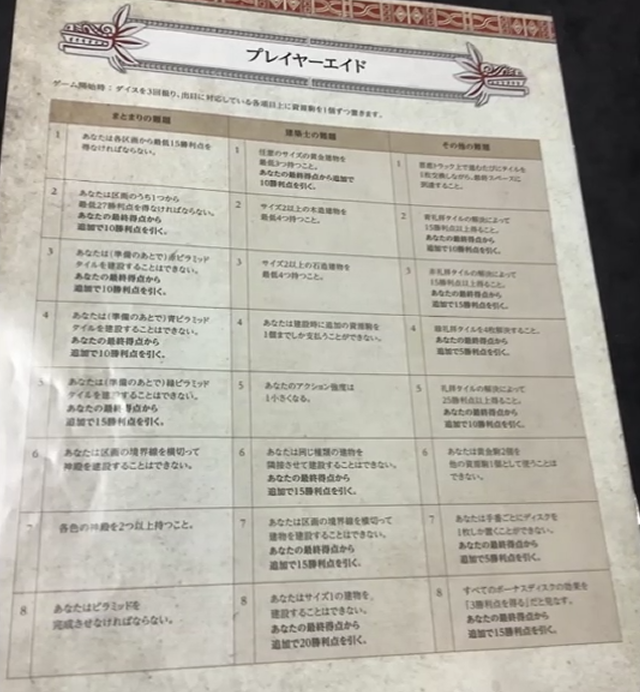 やれ、この色のタイルは置くなとか、各区画で15点以上だせとか、ろくなことがないです。ちなみにこの試練の中には最終得点を引かれるものとかあるので・・・