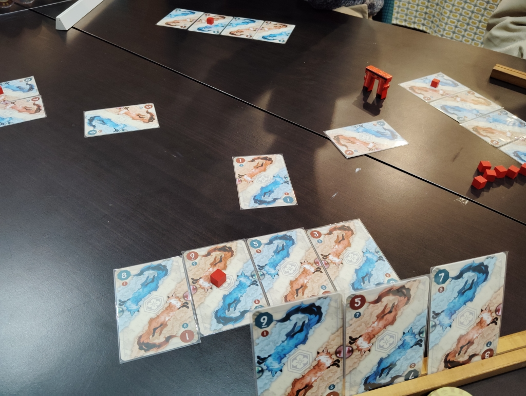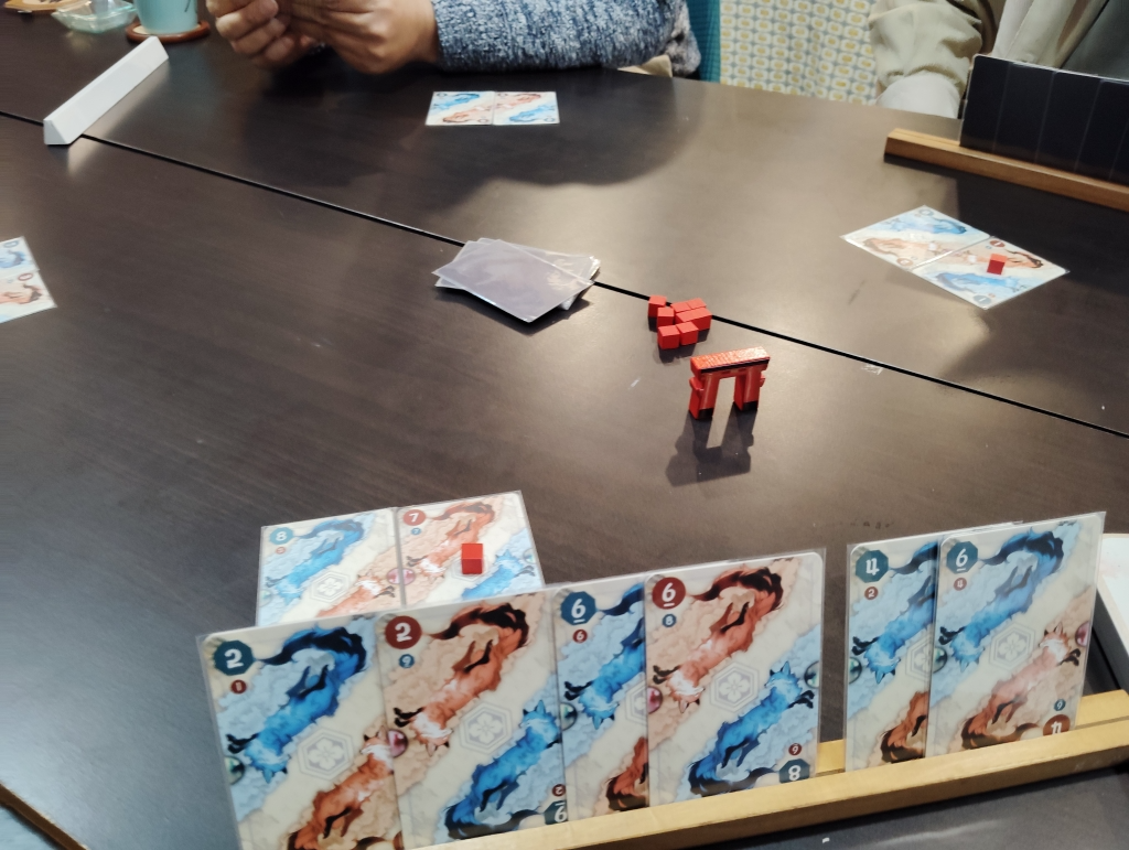 鳥居のコマを持っているとカードの上下を入れ替えできるので、リードプレイヤーになることは大事だけど、うまくいくかは流れも大切でした。