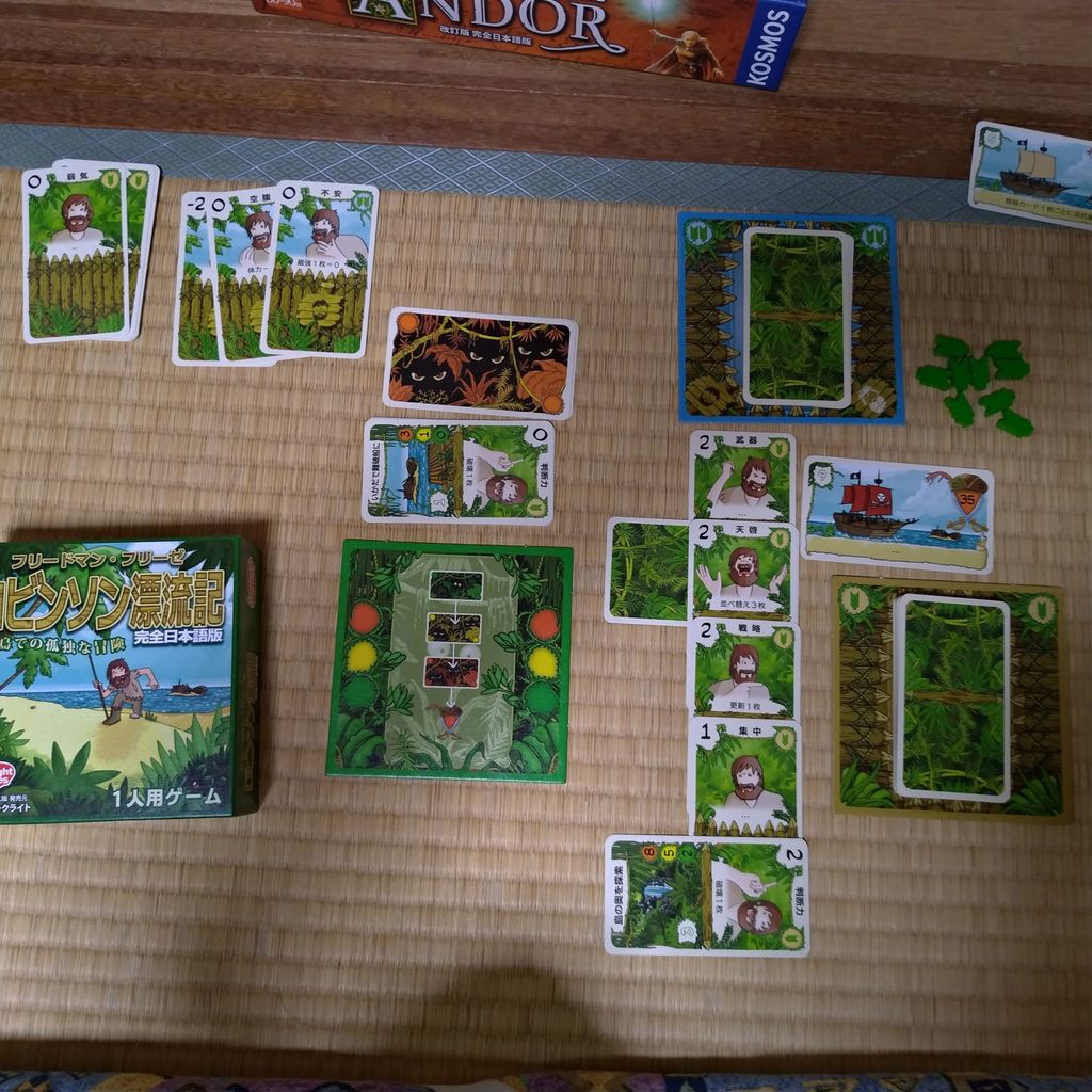 このゲームは、漂着したロビンソンを鍛えて(デッキを強化すること)、島から出ていくことを目的としたソロプレイ専用ゲームです。