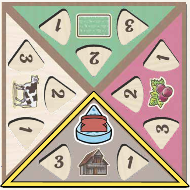 各ターンの後、ボードを時計回りに90度回転させます。 これで、新しい区画でチーズを作り、リソースを集めることができます! |