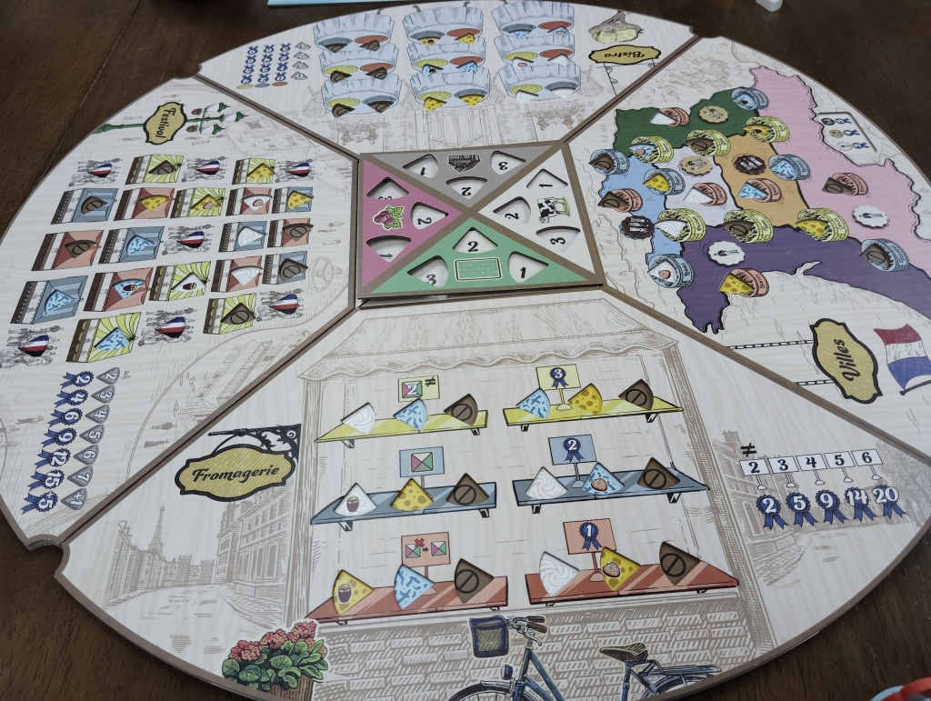 エリアごとにゲーム終了時の得点方法が違い、エリアマジョリティやチーズの隣接点、配置点もあります。
