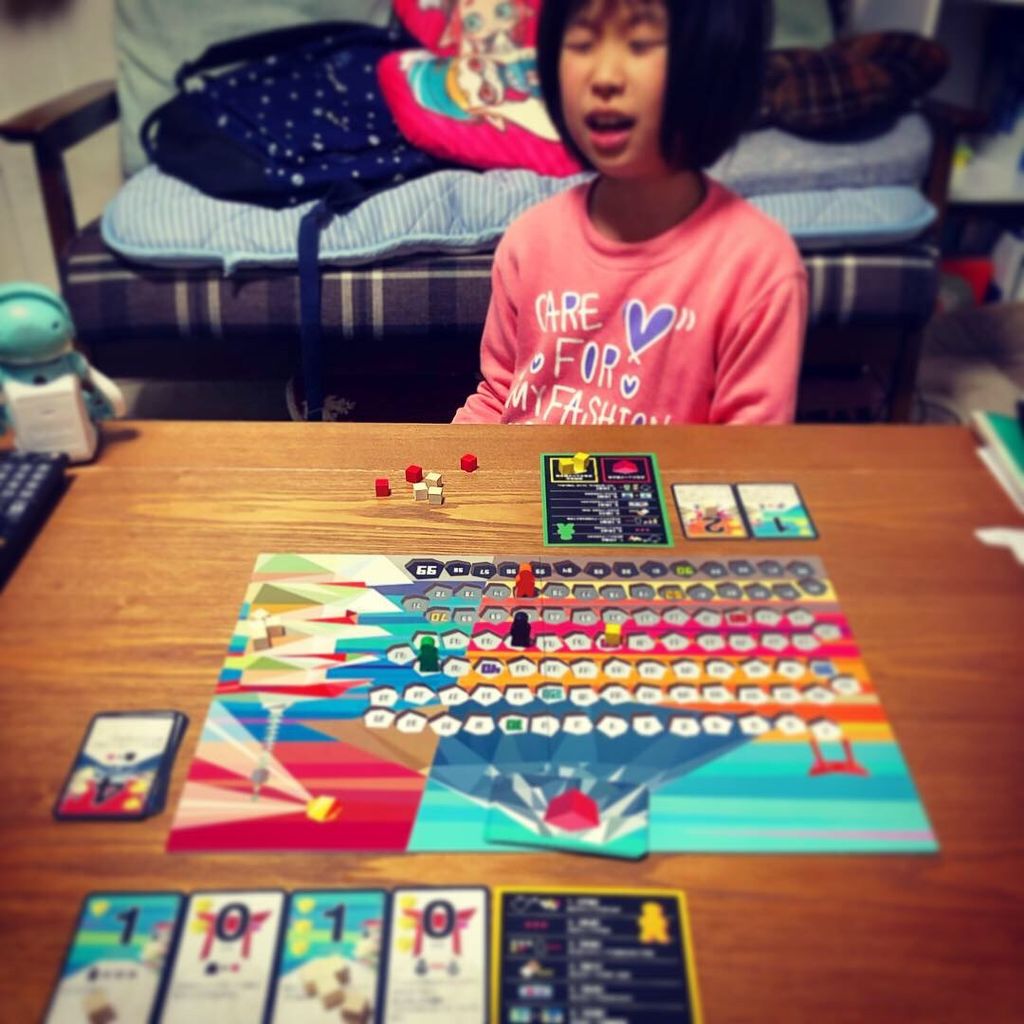 写真の2枚目はムスメさんが赤3つ引いた瞬間。