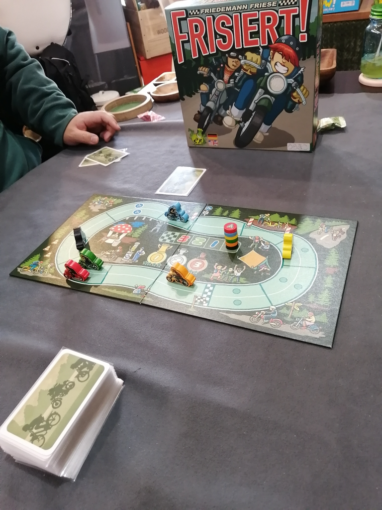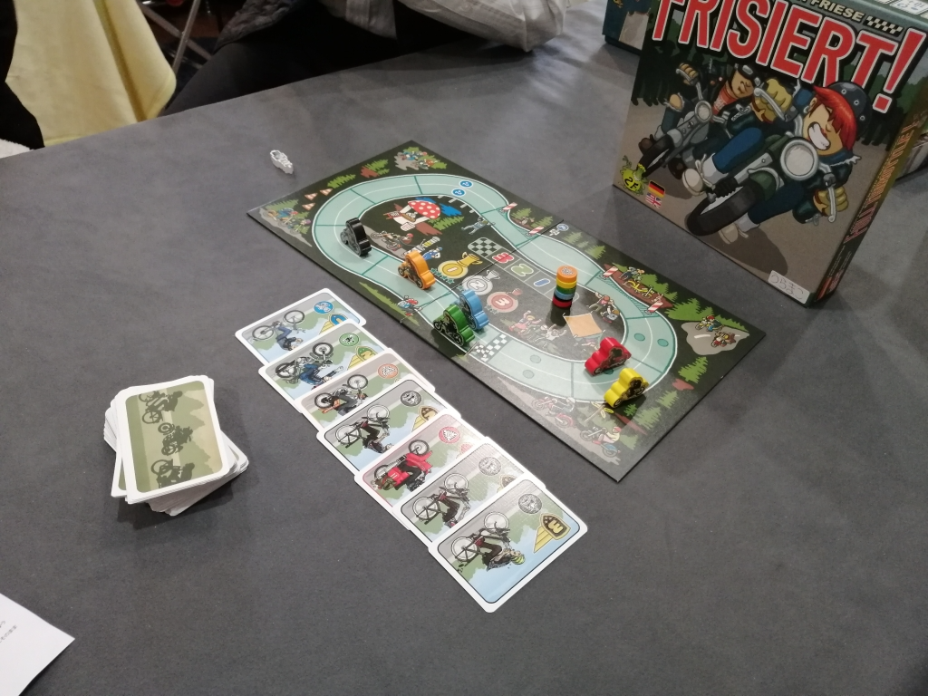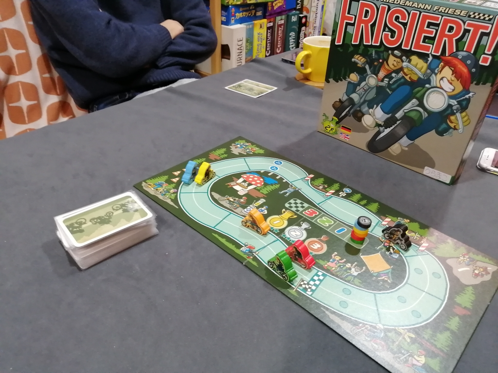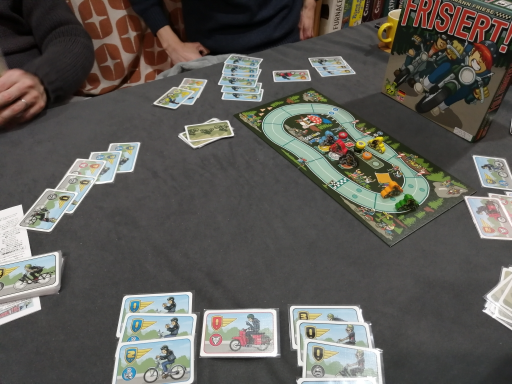 走り屋のレースを見守りながら、1〜3位になりそうな走り屋に賭けて応援。カードは1〜3の移動カードが各色14枚ずつあり、しっかりとシャッフルして山札にする。