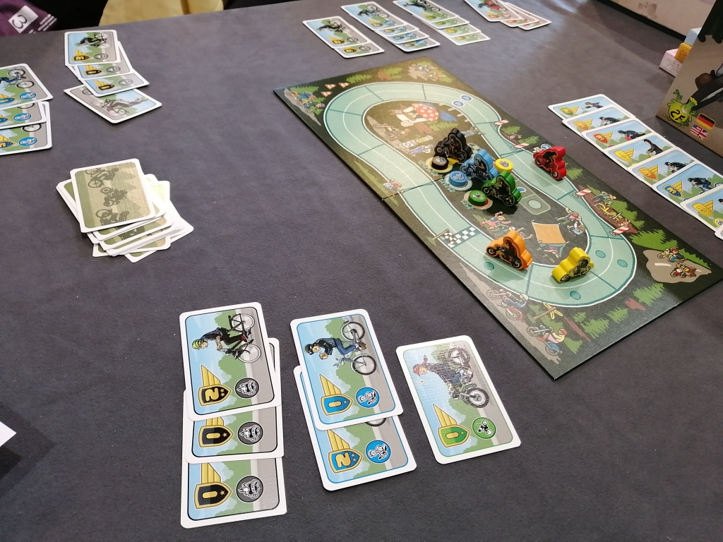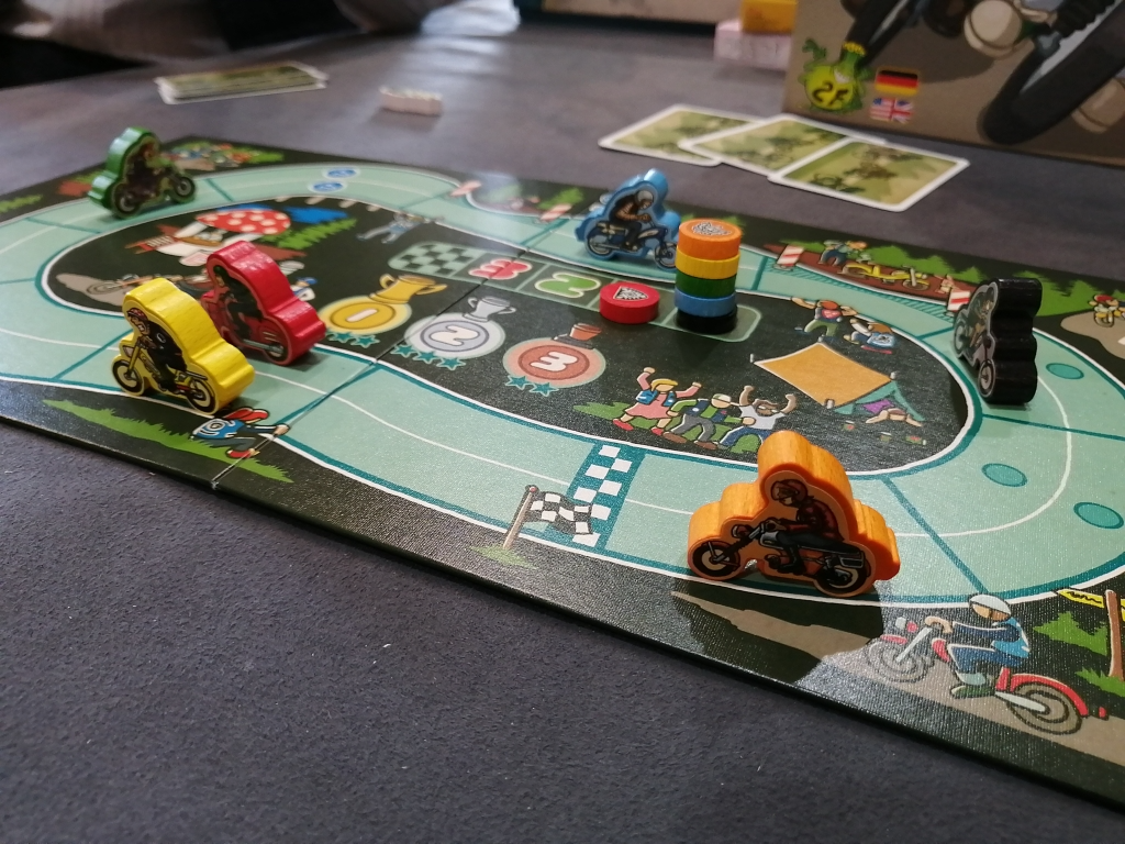 繰り返していくうちに、1台でもゴールしたら選ぶのはやめて、2〜3位がゴールするまでレースを見守る。3位が決まったらゲーム終了で、選んでいたカードの1〜3位の合計得点が高いプレイヤーの勝ちになります。