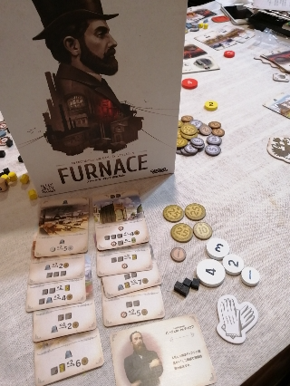 ゲームは4ラウンドして、分かりやすく3~4ラウンドの伸びが気持ちいい。入札は絶対欲しいのは4を早めに置いて、あとは落札できなくても生産&変換狙いにとできてイイね。