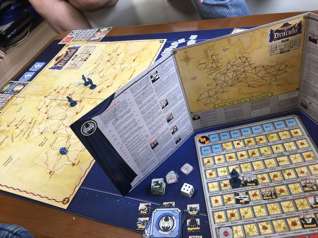 映画ドラキュラの世界で、3人のハンターがドラキュラを倒すか、ドラキュラが配下6人をヨーロッパに送り込み、吸血鬼の王国を築くか、それらを争うゲームです。