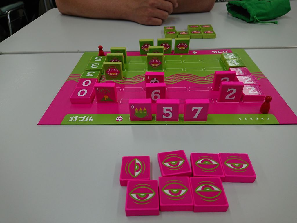 相手が、何のタイルをどこに配置しているかを想像し、予測するゲームです。