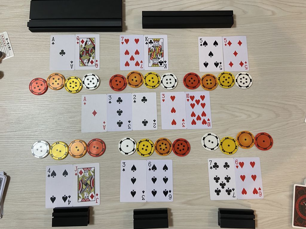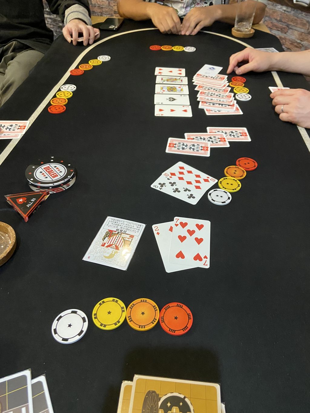 ポーカー好きメンツと5時間やったときには、7人でプレイもしました(追加で仮のチップを使って)。