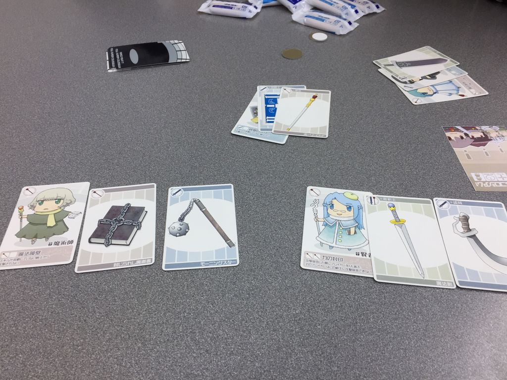 カードを1人でも公開した場合、最後に公開したプレイヤーが勝者となり、得点を得ます。公開には、「キャラクター」「武器」「武器」の手札である必要があります(特殊例はあります)