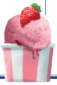 アイスクリームは、カップ、フレーバー、トッピングの3つのパーツで構成されています。 |