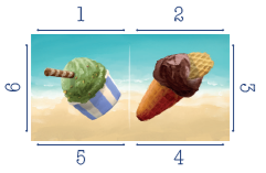 各タイルには6つの辺があります。 別のアイスクリームと接触する(したがって一致する)辺が多いほど、アイスクリームタイルの配置でより多くのポイントを獲得できます。 |