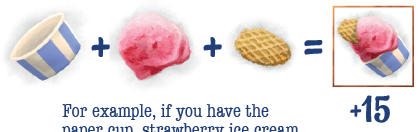 例えば、紙カップ、イチゴアイス、クッキーがあれば、この注文を完了して15ポイントを獲得できます。 |