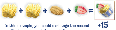 あなたのターンの終わりに、アイスクリームのパーツを最大5つまで保持できます。6つ目を獲得した場合は、1つを捨てるか、2つを1つに交換するか、3つを使用して注文を完了する必要があります。