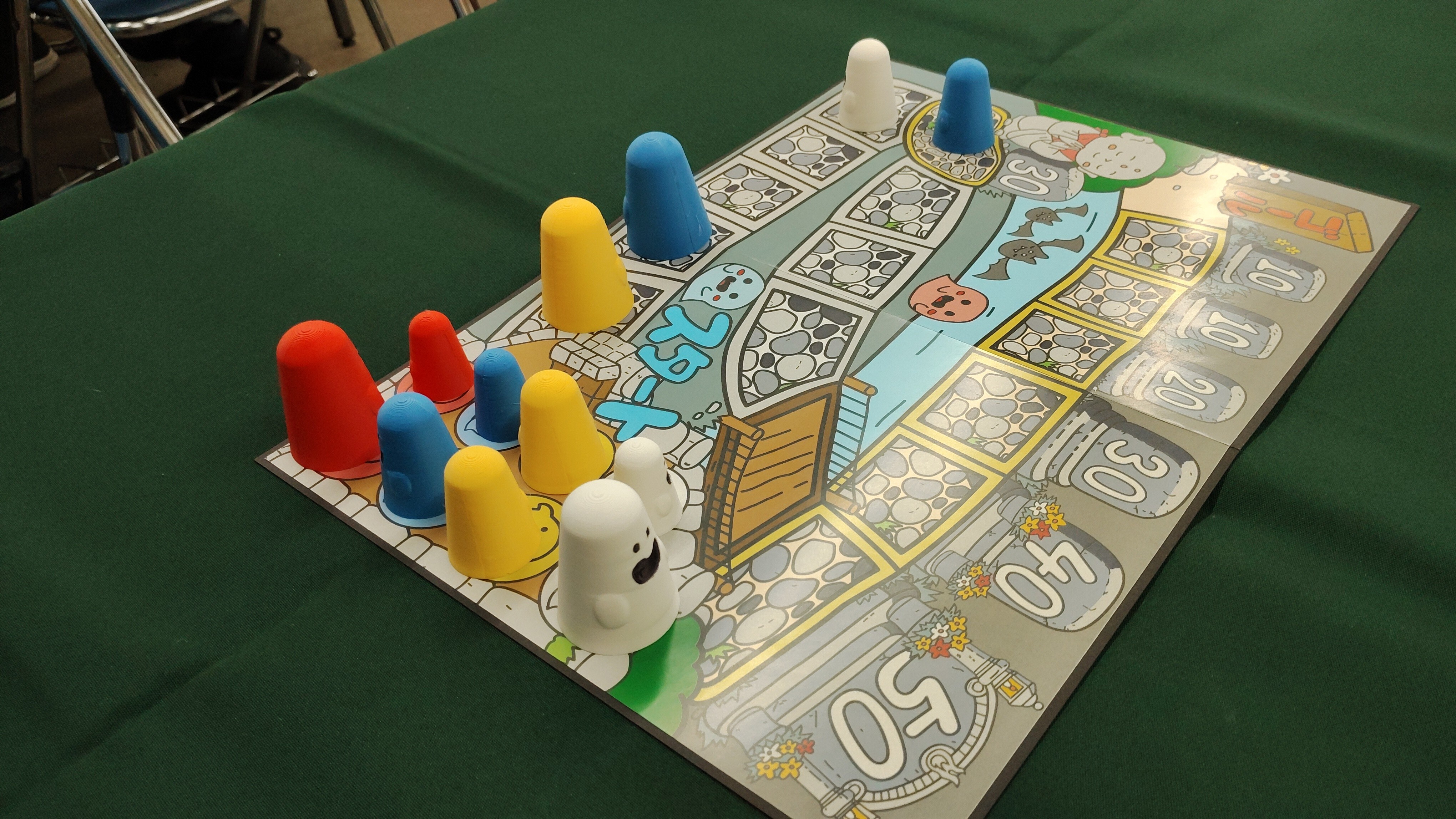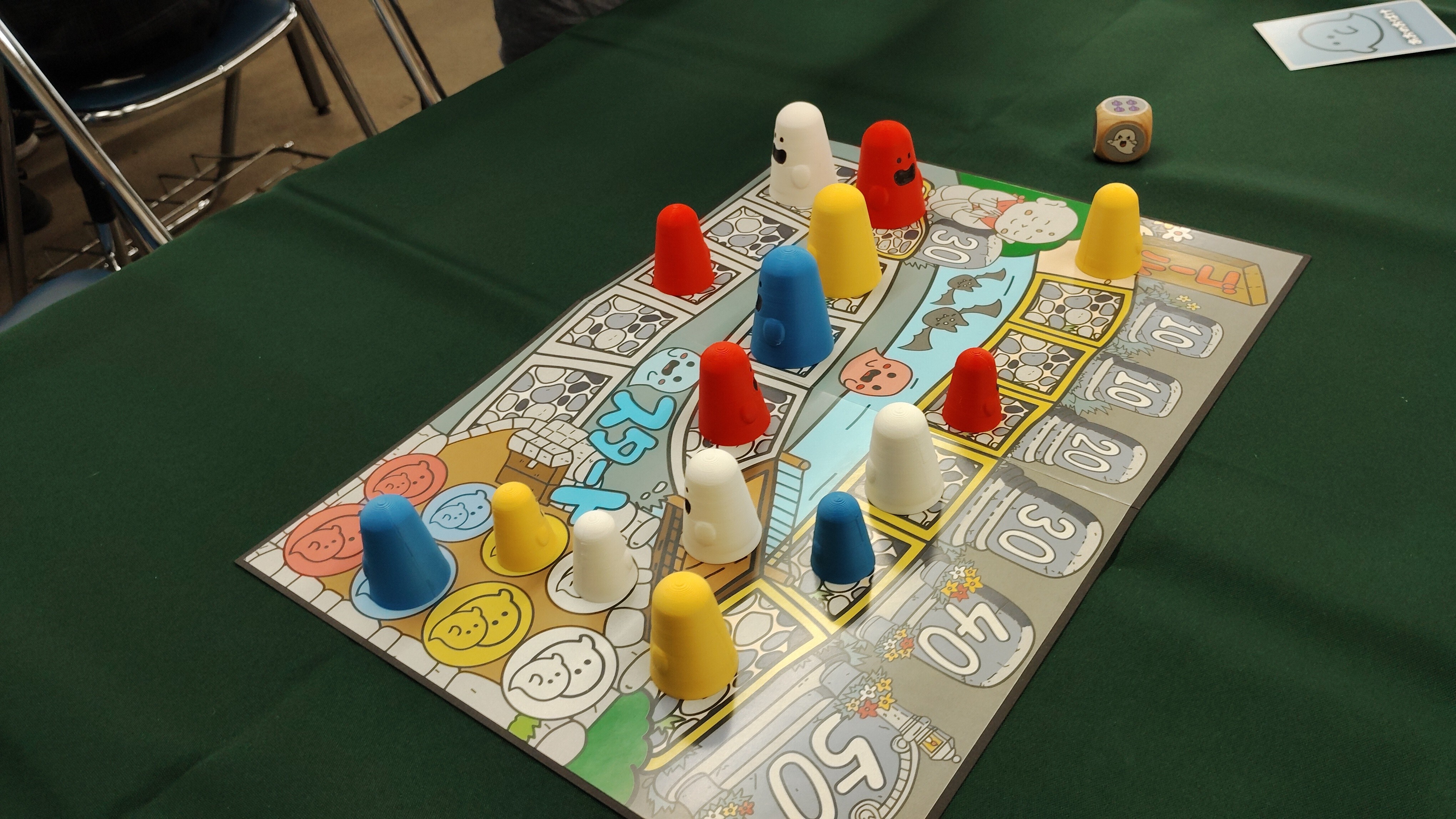 いかに大きなお化けを高得点のマスに止めさせるかを考えつつ駒の動きを考えるのがこのゲームの醍醐味だろう。