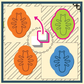 これにより、他のプレイヤーのアリを押し出し、ボードから取り除いて所有者に戻します。あなたのターンの終わりに、彼らは押し出されたアリをボード上の任意の空きスペースに置き、通常どおり効果をトリガーします。
