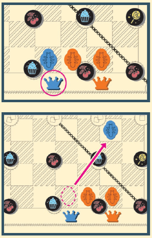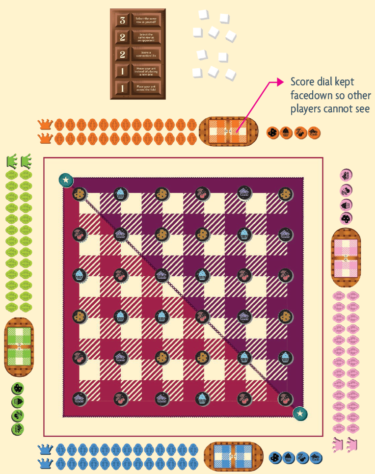 • これによって空になったスペースに示されているアイコンに従い、1つまたは2つの角砂糖を、空になった交点の円の上に置きます。