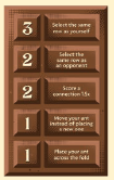 • コネクションを1.5倍にする:コネクションを作成したとき、通常のポイント数の1.5倍(端数切り捨て)を獲得します(通常通りのポイントをまず獲得し、そのポイントの半分の追加ボーナスを獲得します)。 例: アレックス(橙)は、アリ6匹の長さの接続で9ポイント(6×1.5)を獲得しました。 |