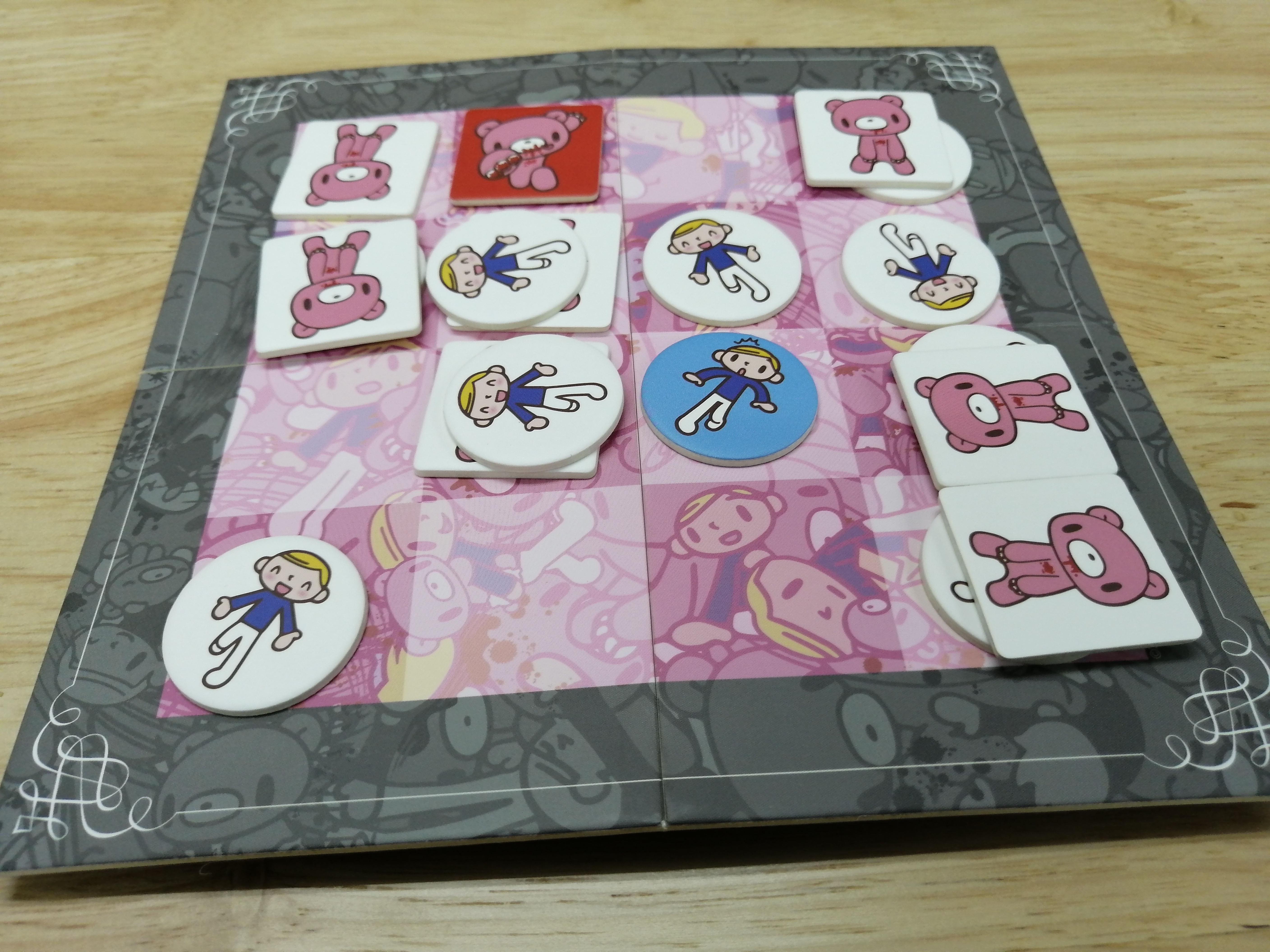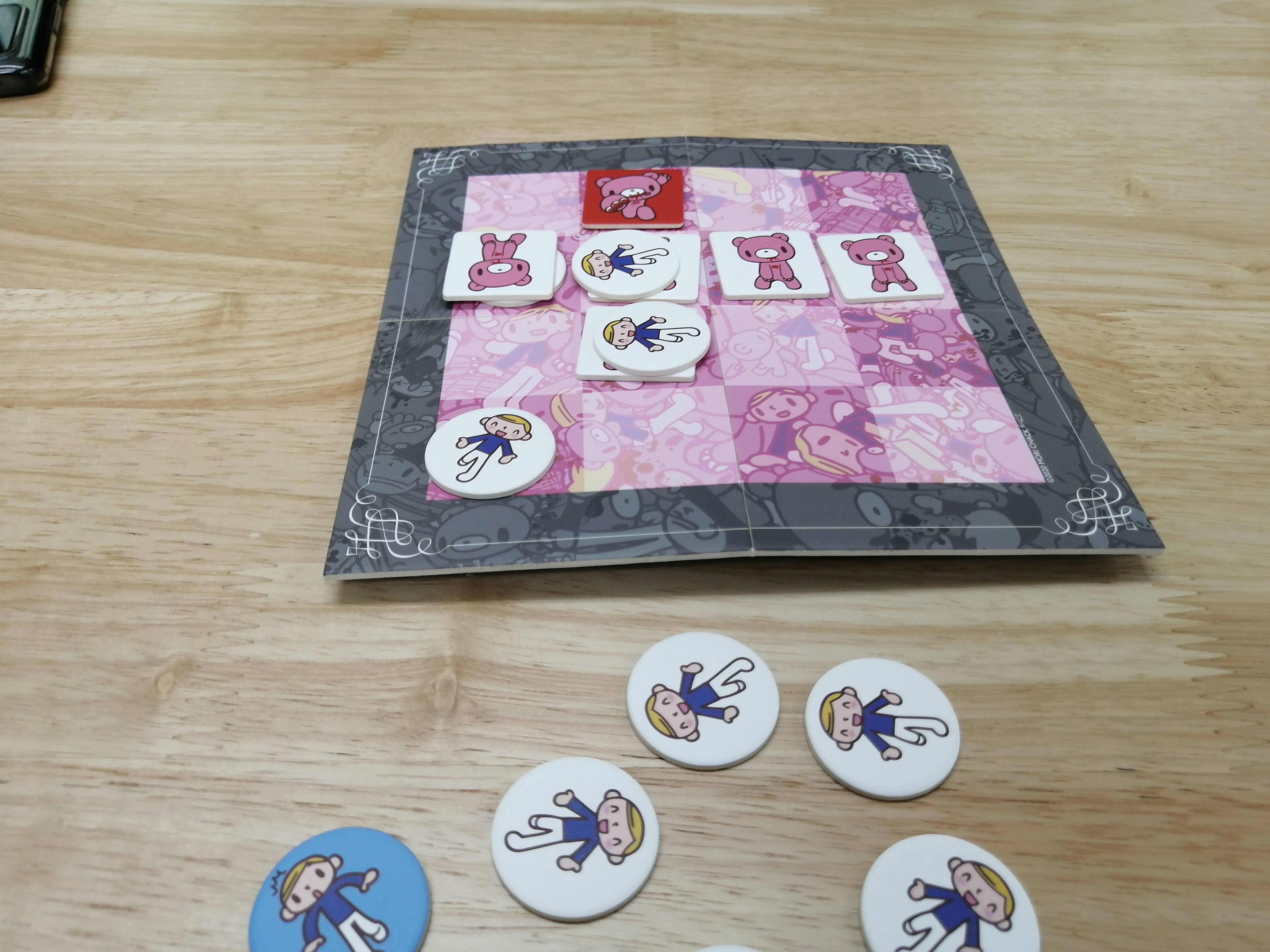 先行、後攻を決めたら後攻は先行プレイヤーの固定タイルを4×4のマスのどこかに配置してから自分のタイルを配置してゲームスタート。