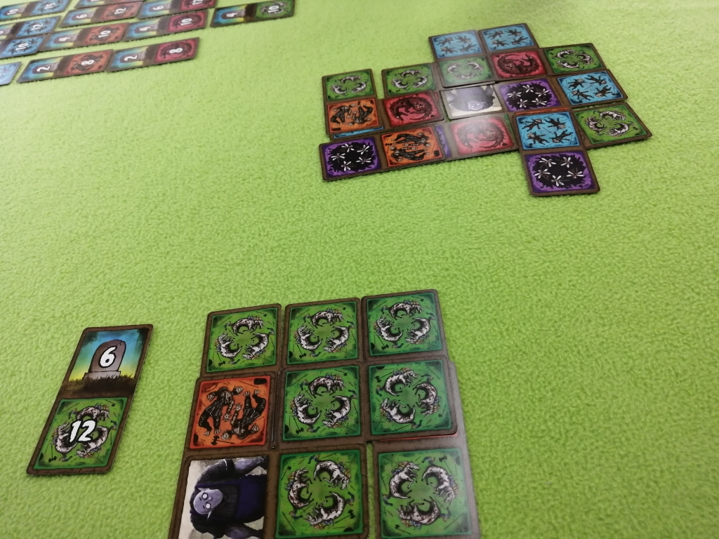 個人の墓場は3×3に収まるように配置する必要があるが、カード1枚にそのまま重なるように配置してもいい。