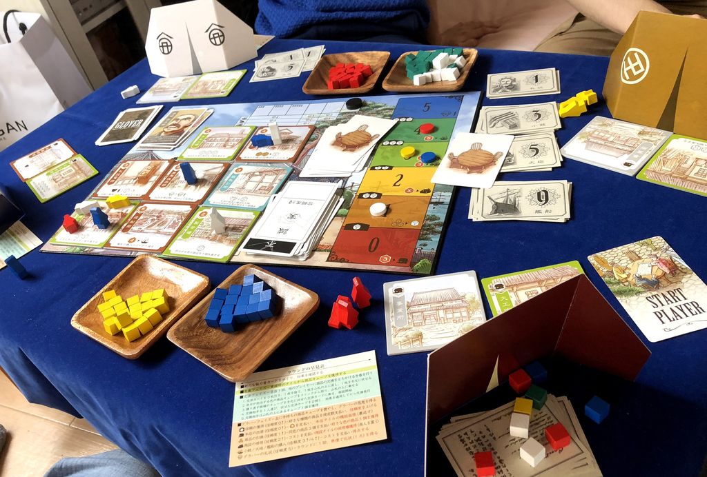 4人でプレイ。コンポーネントの美しさに惹かれ購入した。交渉フェイズに心配があったものの、カードがある分だいぶ単純にできた。1ラウンド目に交渉の場に乗れるかどうかで、立ち回りやすさが結構変わると思う。グラバーフェイズでカツカツまで勝利点に変換してしまうと、その後のラウンドで交渉材料となる商品が尽きてしまう。