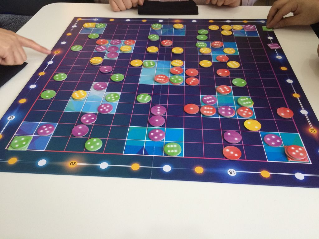 また、ボードゲームならではの盤面外での交渉も大事。「うわーそこ置かないでくれー!」「◯◯さんがいまめっちゃ有利やから塗りつぶしましょうよー」といったことが可能。