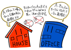 しかも、建物ごとにAとBの2種類の得点条件が!ゲームごとに組み合わせを変化させて、違う戦略が必要とされるゲームが楽しめます。