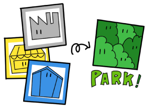 さらに、「この建物はどうしても置きたくない…」というときは、建物タイルを裏返すと公園になります!
