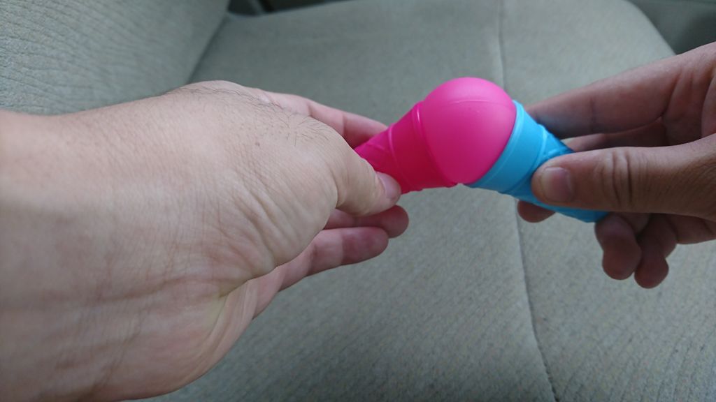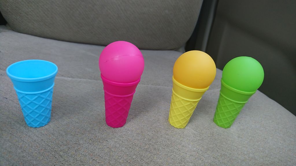 まず始めに各色のコーン1つずつ計4個と各色の丸いボール1つ計3個を取りましょう。そして同じ色のコーンに同じ色のボールを乗せます!この時写真のように青色のコーンには何も乗せません。