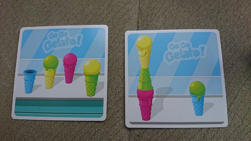 一番最初に移し変えることが出来た人がゴーゴージェラートと叫びそのカードを取ればポイントゲットです!その後またカードをめくり同じ事を繰り返して行います!