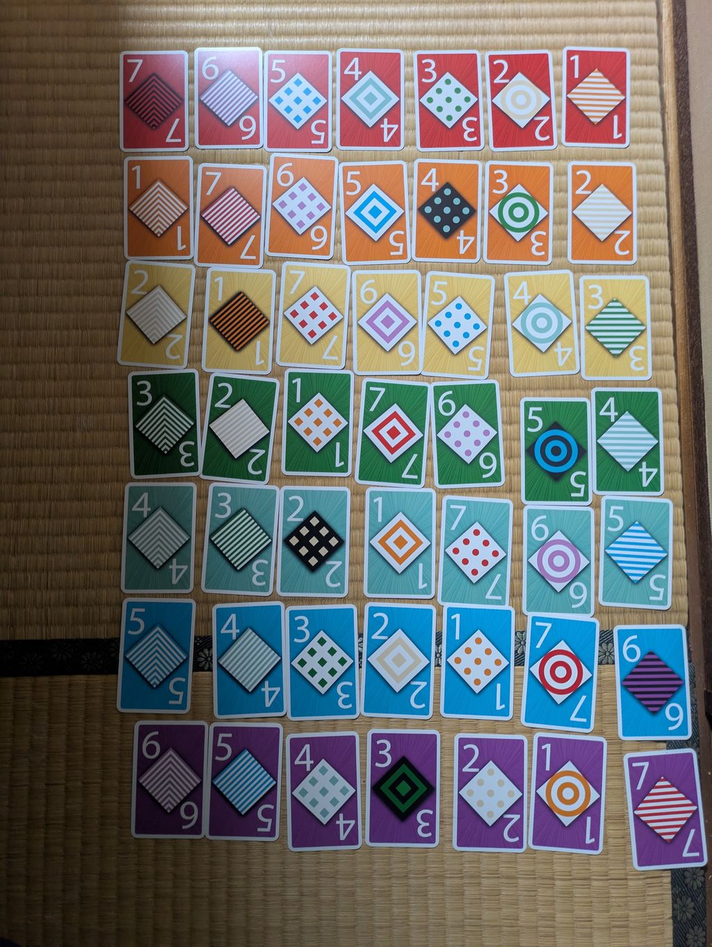 1から7までの数字の7枚