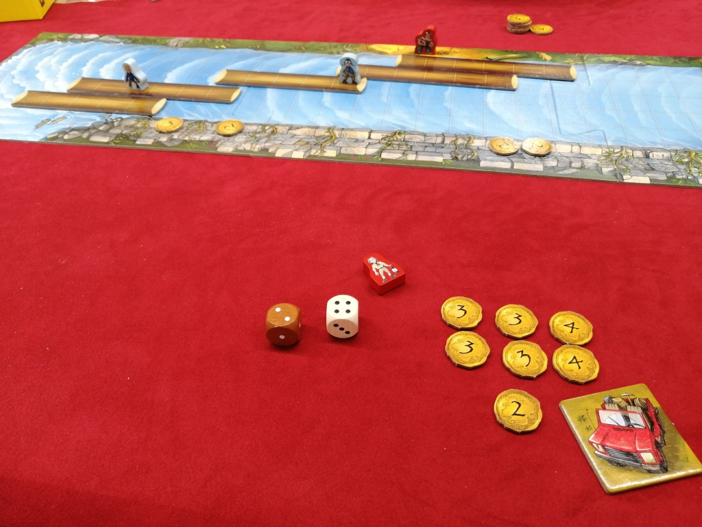 ダイス運もあるかもですが、イカダとコマと動かし方によって金貨をしっかりと獲得できますし、妨害もできるしで大人も子供も楽しめるHABAゲームでした。