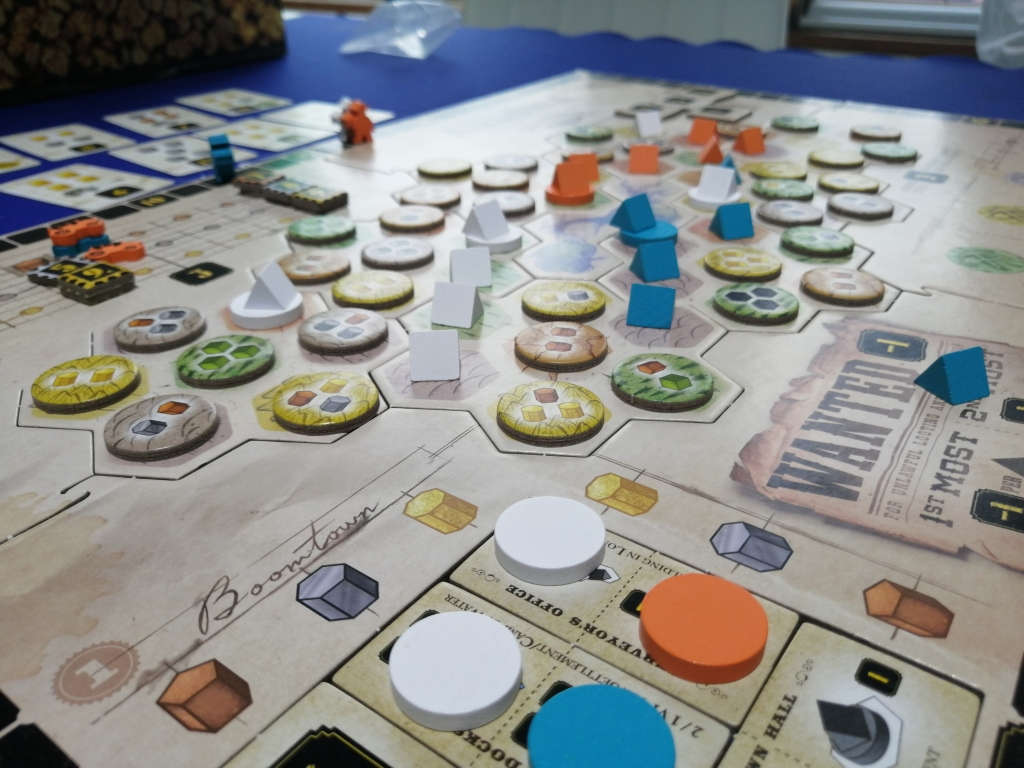 六角形の資材は3色あり組み合わせることにより早取りのゲーム終了時のボーナス取りだったり、資源だけ支払うことで通過点や早取りのボーナスタイルを獲得できたりします。