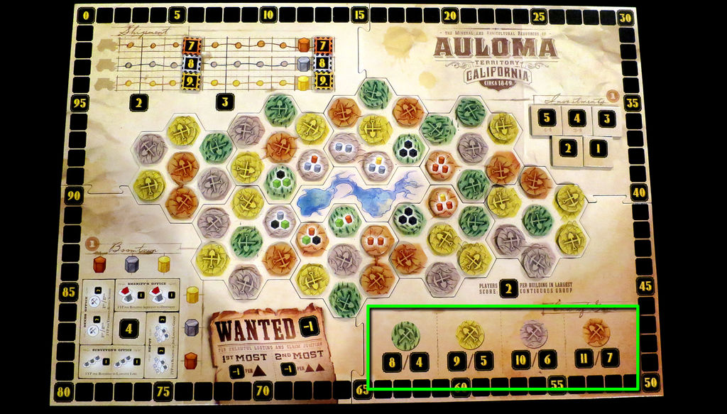 入手した資源を下の方に置けば高めの勝利点を稼げますが