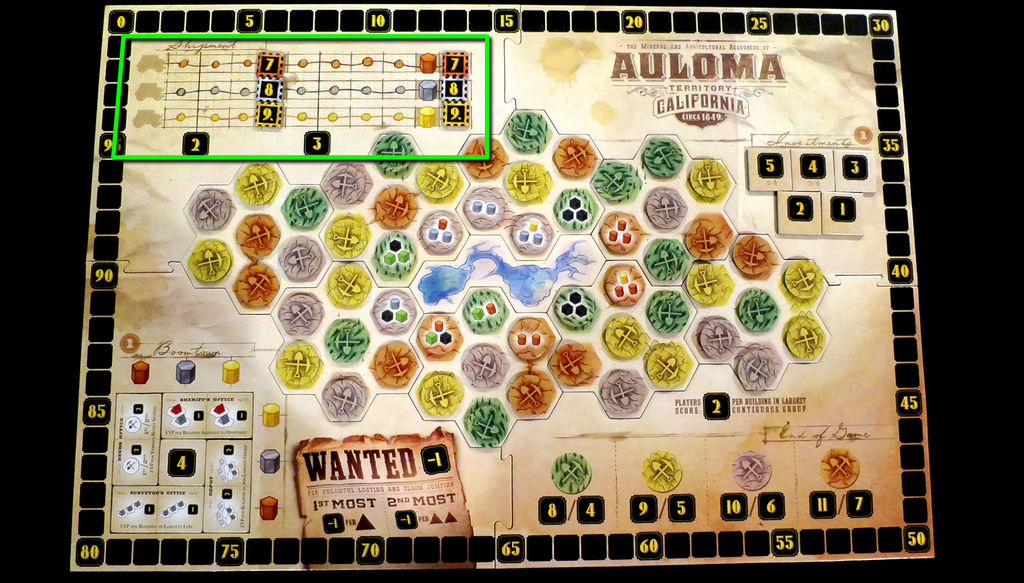 入手した貴金属を投入するだけで駅馬車が前進し通過した勝利点を獲得できます。