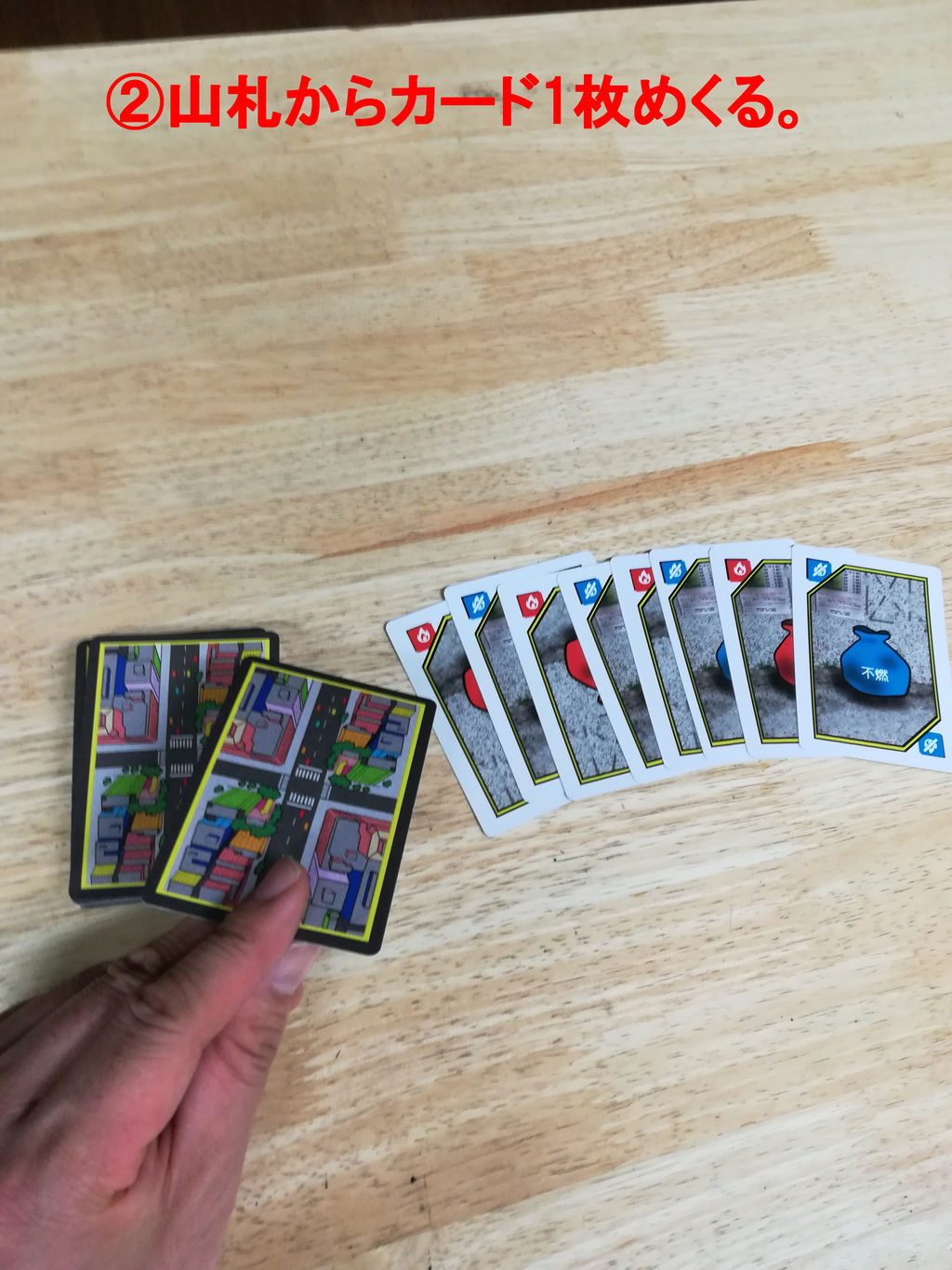 ②山札からカードを1枚めくる。
