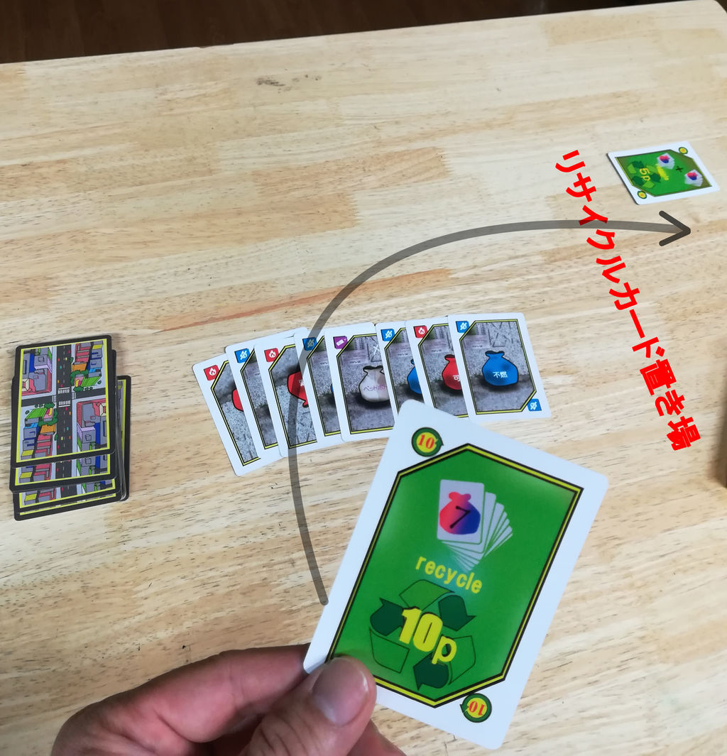 この時、リサイクルカード置き場にリサイクルカードがあれば、リサイクルカード(得点)を得るチャンスです。