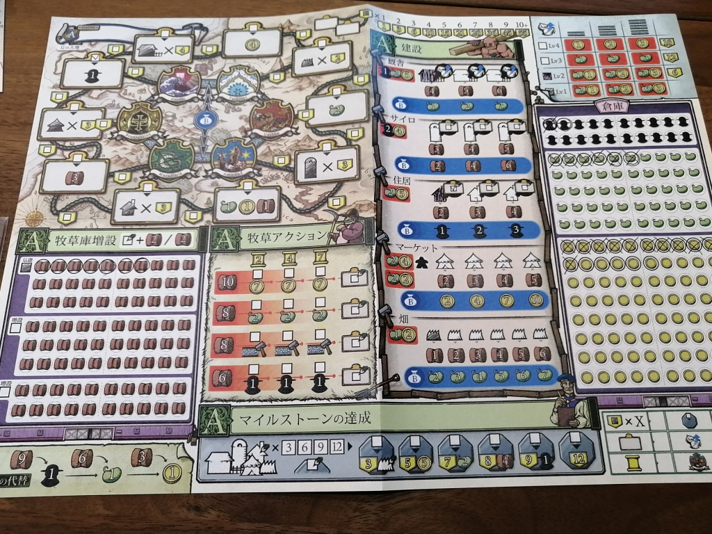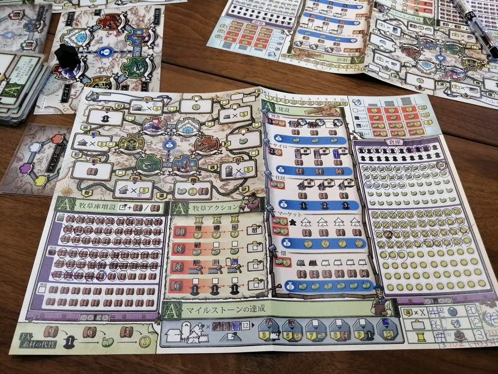 15生産、15アクションしたらゲーム終了で得点が高いプレイヤーの勝ち。同時にチェックやアクションとかするので、各プレイヤー順番に確認しながらがはじめて遊ぶなら処理間違いも気づきながらで安全かも。