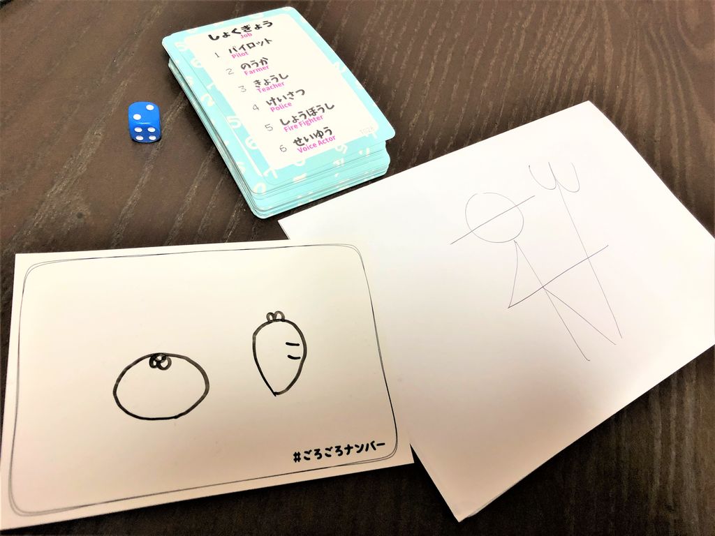 ごろごろナンバーは3人から遊べて、各自の手札のお題を書いて周りのプレイヤーに当ててもらうゲームです!が、2人しかいなかったので、そもそも数字を使ってお題を表現できるのか…?と試しに絵を書くとこだけやってみました…!