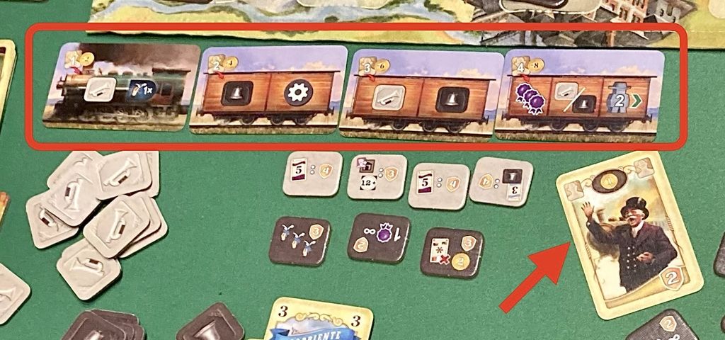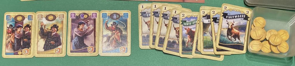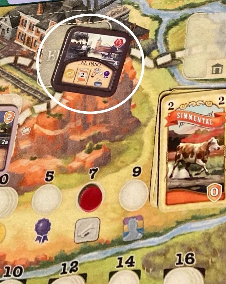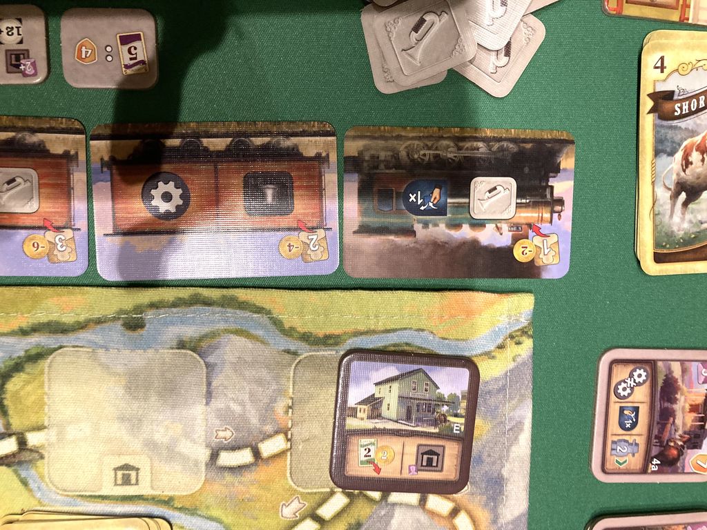 3種類の人物は【牛】【列車】【建物】に対応していて(1枚オールマイティ)それぞれ買える場所がエルパソまでの1周で1ヶ所ずつしか無く
