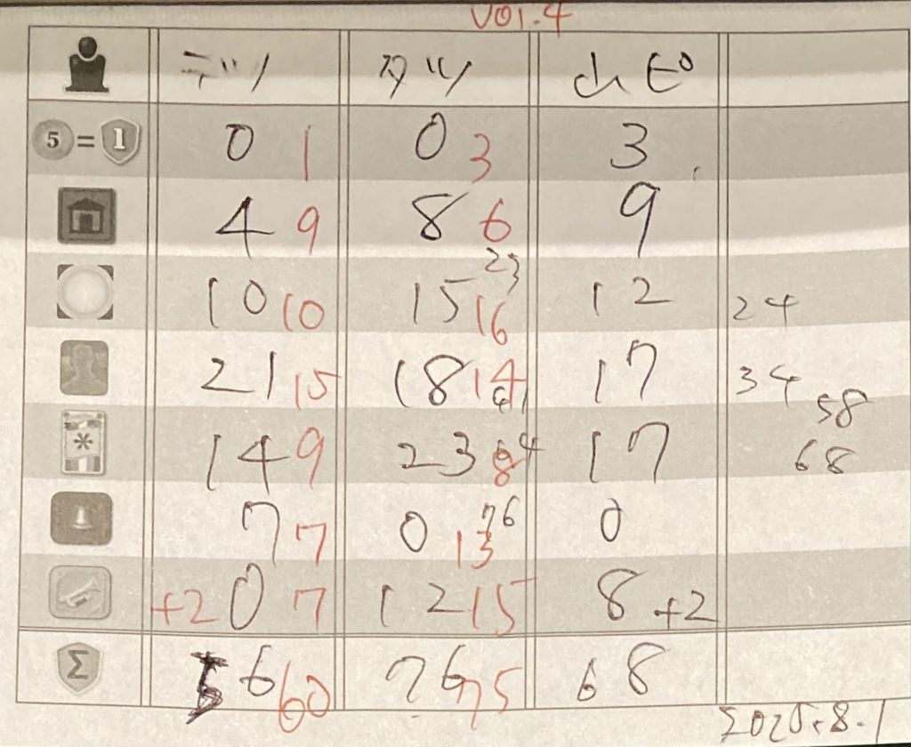 初プレイでは説明込み2時間半以上かかりましたが、最終的には70分で終え