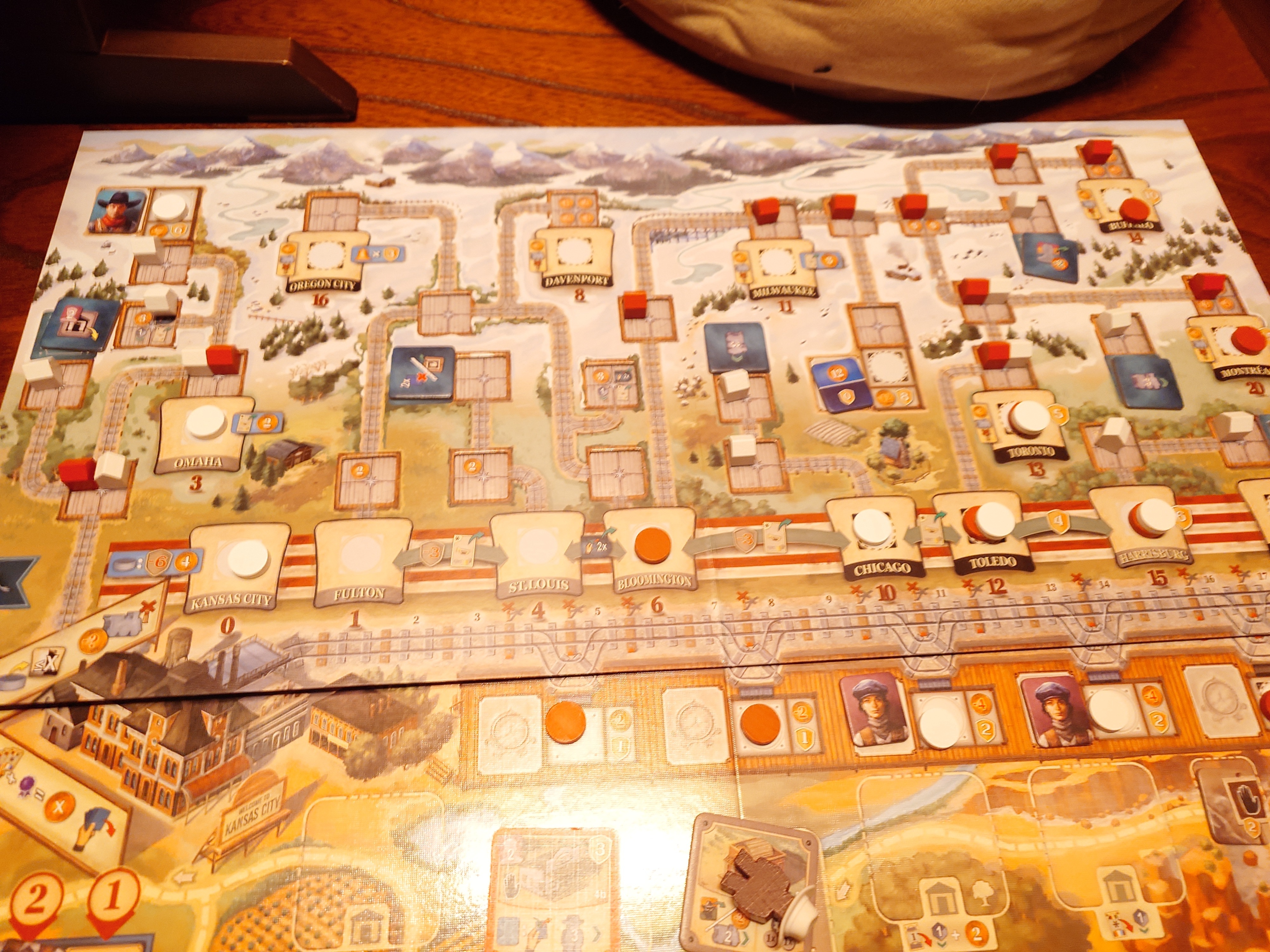 支社を建設することによりニューヨークへの本線から、カナダやオレゴンへの支線に入っていくことができます。支線には、鉄道をつなぐ小都市、駅のある都市、特種アクションができる中都市、ディスクを置ける大都市があり、モントリオールまでいくと20出荷ポイントでなんと15勝利点!