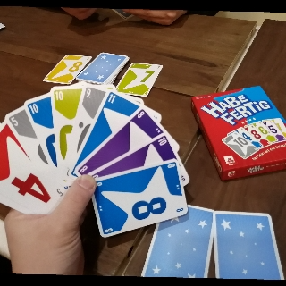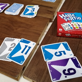 7と8みたいに間が無くなると山札からカードが1枚めくり、どちらかに重ねて間を作りゲームを再開です。色の縛りがうまく効いていて、数字は間なのにこの色では連続手番ができないからどうするってなったり、ある程度は重ねられているカードを覚えておくことで、このカードなら出しにくいやろってプレイしたりやらにと考えどころが楽しい。