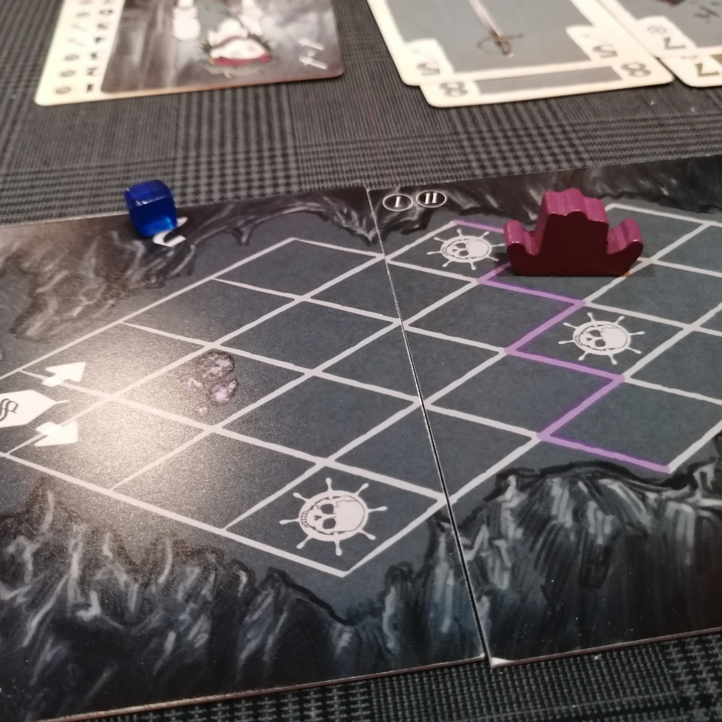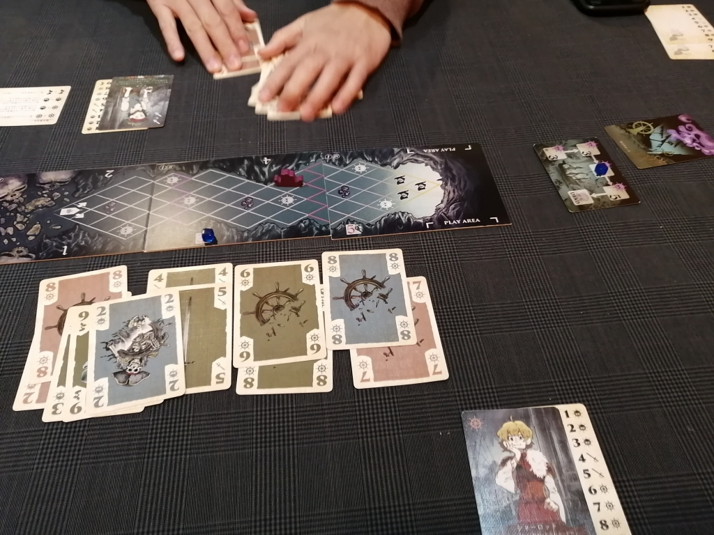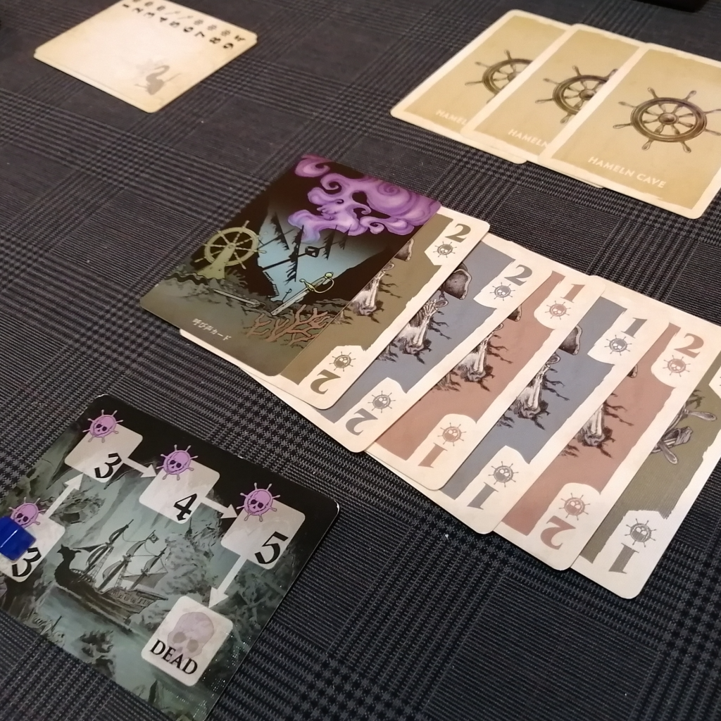 2人がカードをプレイしたあとで、アイコンの組み合わせにより船が進んだり亡霊を倒したりすることができる。剣と剣なら配られなかったカードを1枚公開して、アイコンに応じたアクションができたりと組み合わせをどうするかがトリック獲得以上に重要。