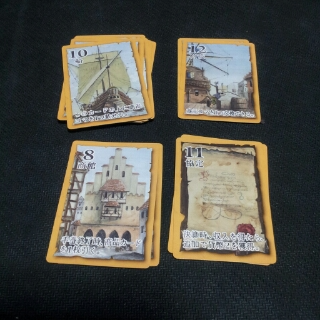 ゲームで使用しますのは、商品カード、特殊カード、商品コマ、貨幣チップです。