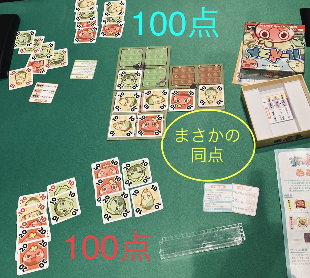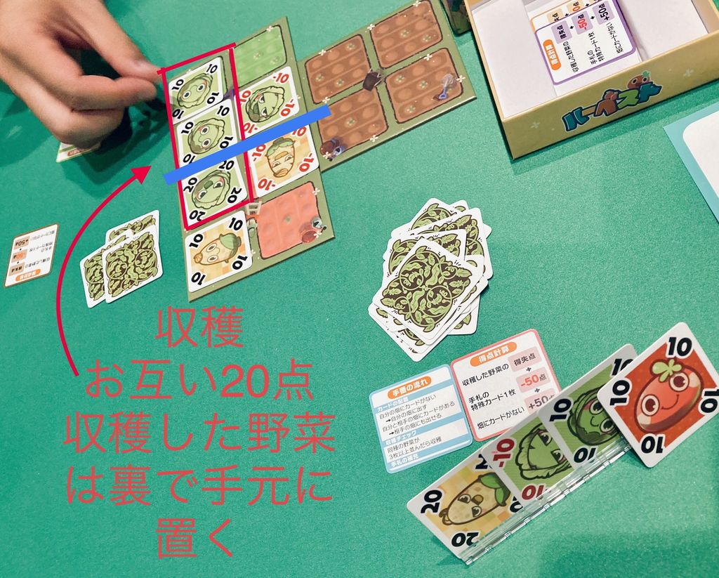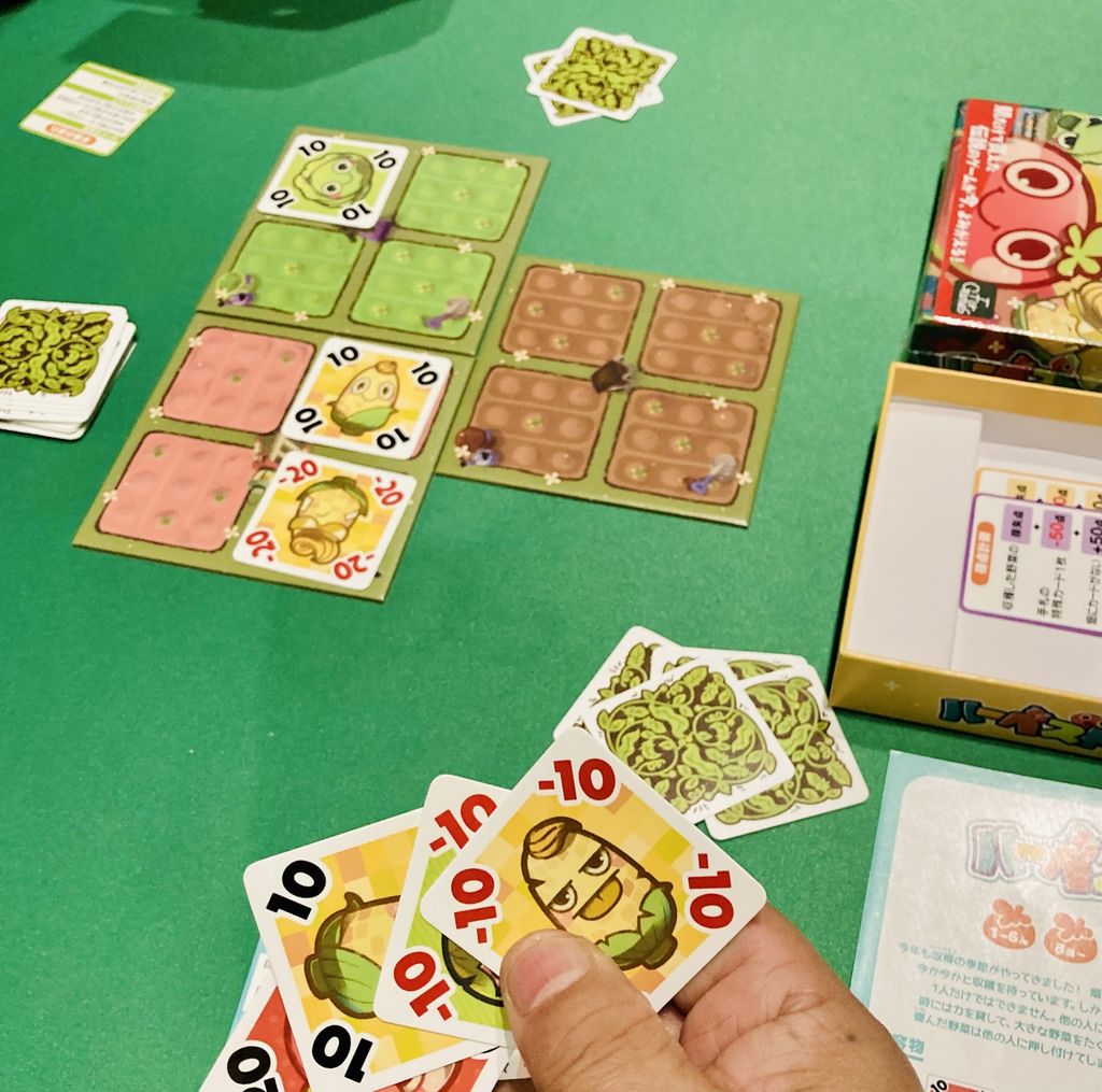 お互い自分の畑に野菜タイルが置いてあれば、相手の畑に置けるから当然マイナスを相手の畑へ置くことになる