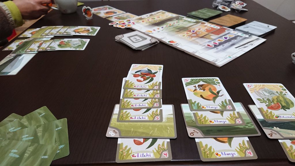 我が家では2人プレイで何度も遊んでいる良作です。天気のバーストや、相手と果実の取り合いなど多少のドキドキ感がある中、まったりと作物を育てられるのが良いです。