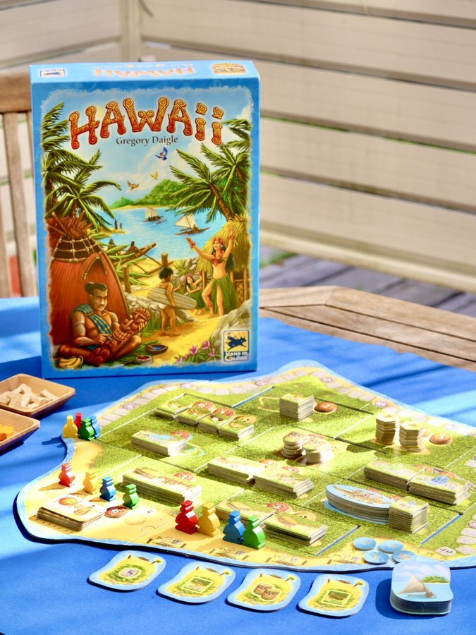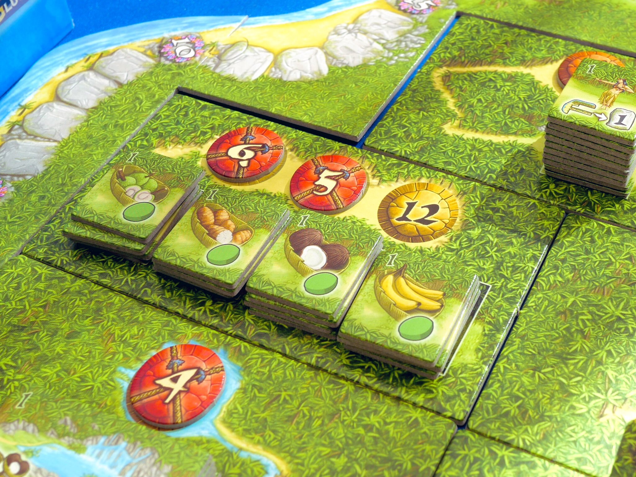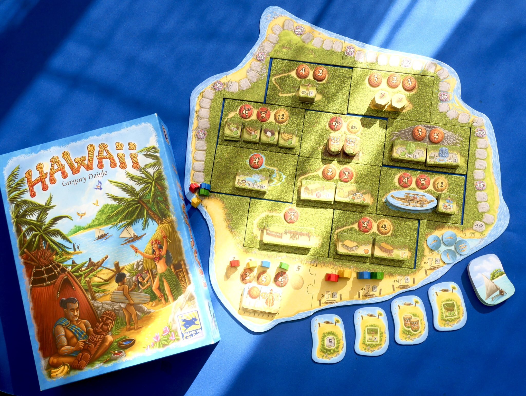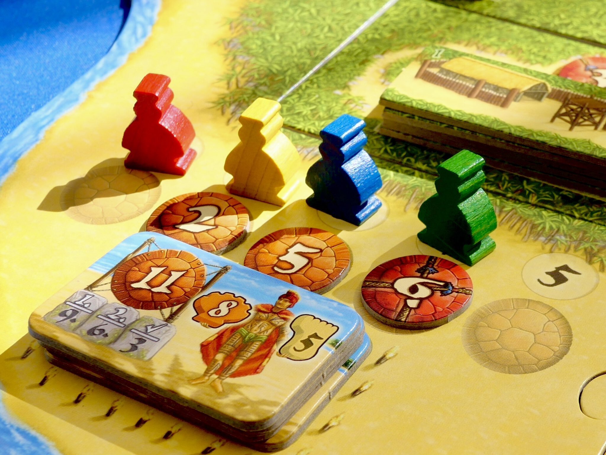 南国の島を舞台にした村作りがテーマのソリッドなゲーム。獲得するタイルの価値がラウンド毎に変化するユニークなシステムが楽しい。
