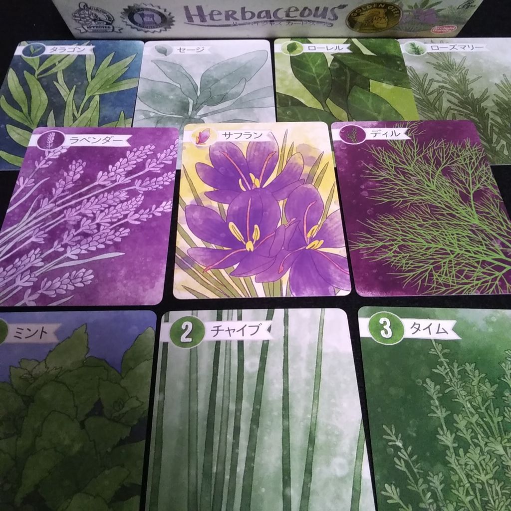 とにかくハーブの絵が素敵で、普段ゲームで遊ばない人も食いつきがよく、テーブルの上に並べるだけで癒されます🌿