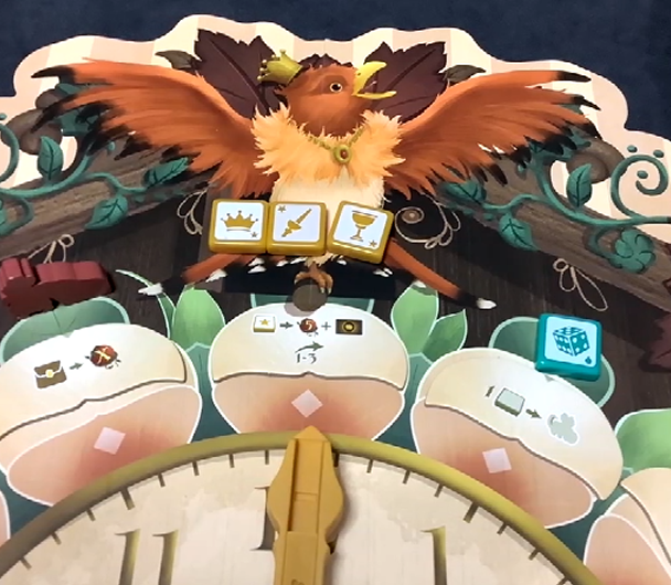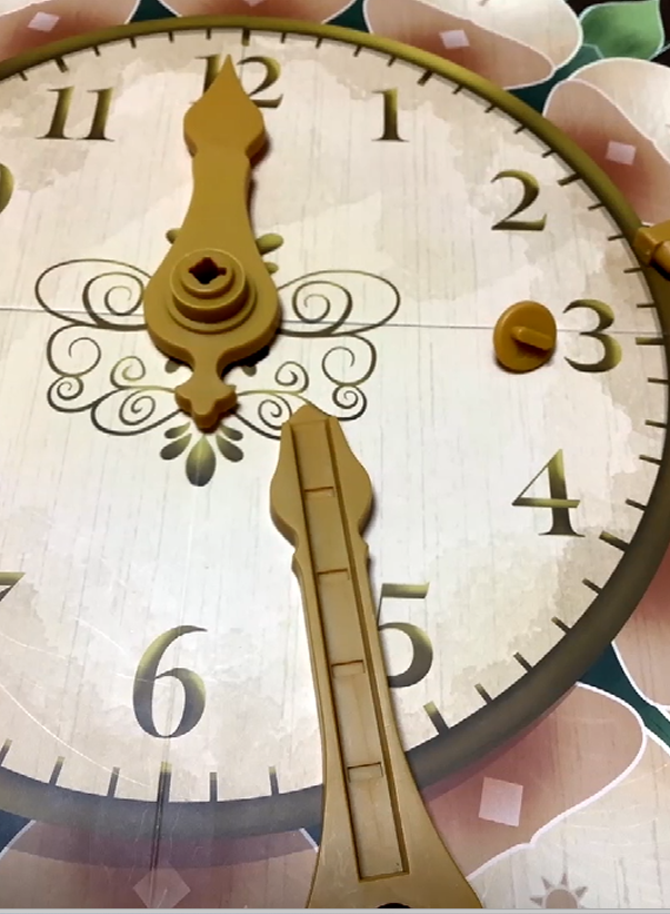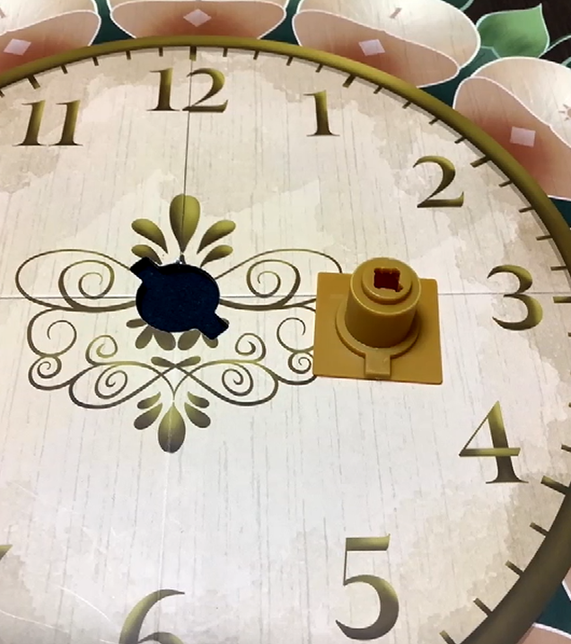 ゲームのセッティングはこんな感じ、時計をモチーフにしている。針もちゃんと回るようになっているのだが