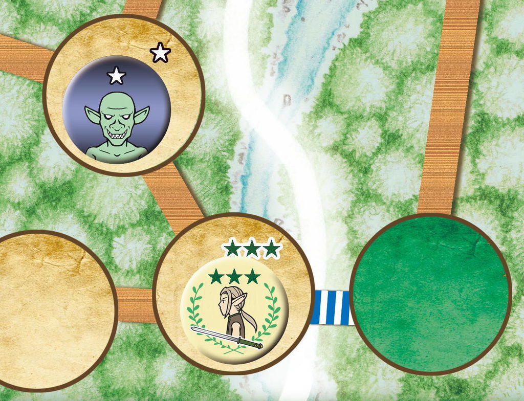 エルフは3戦力(★が3個分)まで、闇の陣営は★の数に関わらず、1エリア